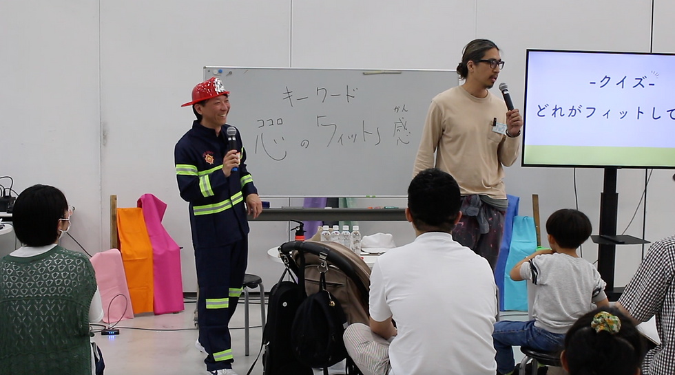 1⼈のお⼦さんが「消防⼠さんのマネをしてる⼈!」と答えました。